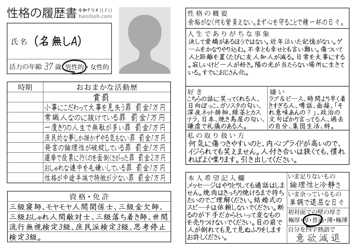 おふざけではないですし、バーナム効果(誰にでも当てはまるようなことで当たった気にさせる効果)を狙ったものでもないのです。